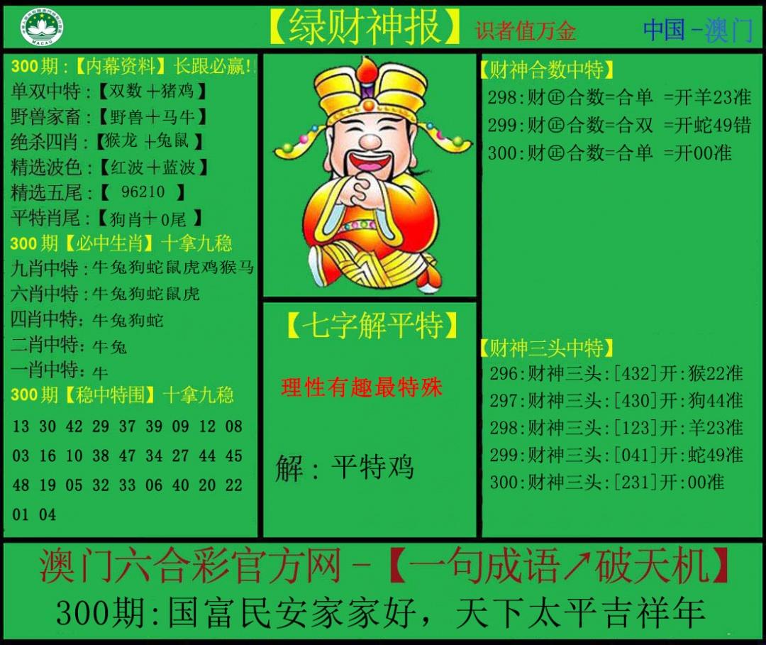 | 300期:内幕中爆【救世③码】重点推荐 |