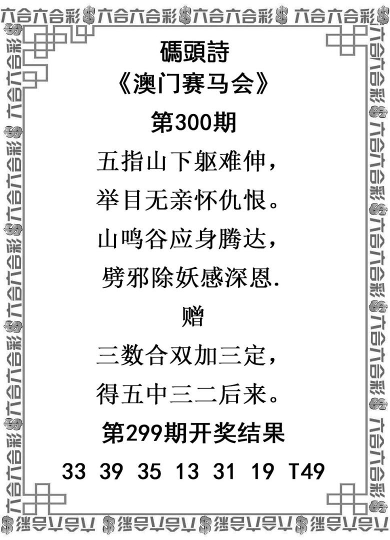 本资料一切以准为中心,实实在在的资料,一切为彩民们的利益着想,一定帮助彩民稳定中奖,早日走出六合困境,狂挣几万,十万,百万财富!相信彩民们在我们资料的帮助下,能在六合彩发家致富,发现我,影响你!迈出你人生的一小步,才会成就人生的一大步,无论任何时候,我与您同在!